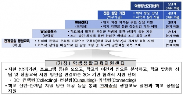 가칭학생생활교육지원센터를 구축해 1단계로 올해는 전문인력을 채용해 시범 운영하고, 2단계로 내년부터는 전문적이고 체계적으로 그리고 직접적으로 학교를 지원한다.