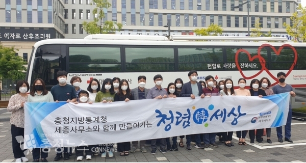 충청지방통계청 세종사무소(소장 전혜옥)는 7일 세종시 지방자치회관에서 “2021년 3차 사랑나눔 헌혈행사”를 실시했다.