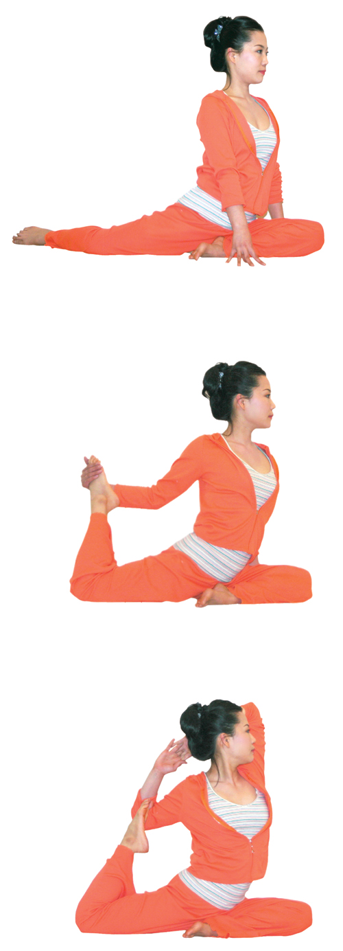상체와 하체가 동시에 늘씬해질 수 있는 요가동작으로 다리 앞쪽과 팔뚝의 살, 그리고 옆구리까지 한꺼번에 늘려주어 매력적인 옆 라인을 만들어