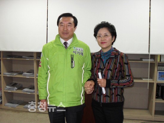 ▲ 사진 왼쪽 이기재 후보, 오른쪽 김세호 前 태안군수 부인 신은애씨