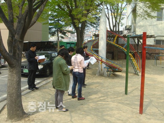 ▲ 15일 서오아파트 어린이놀이터 현지조사 모습.