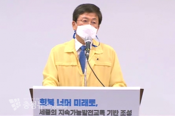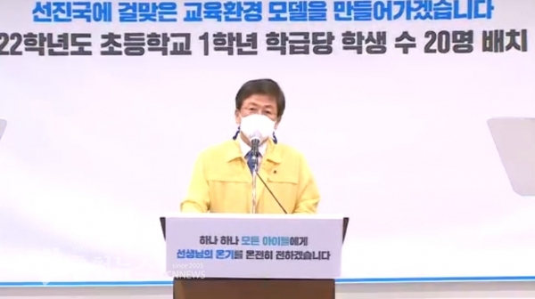 그러면서 "2022학년도부터 대한민국 교육게의 숙원인 세종의 52개 모든 초등학교의 1학년 학급당 학생 수를 20명으로 배치할 계획"이라고 강조했다.