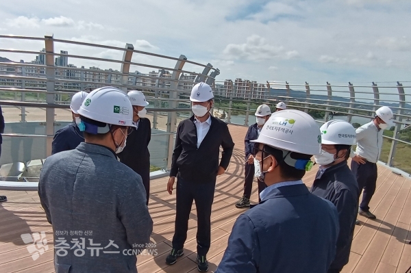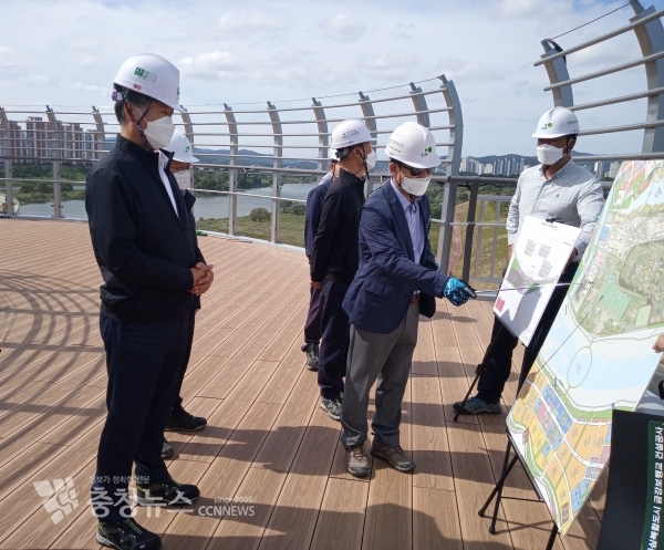 박무익 행정중심복합도시건설청장은 16일 금강보행교 건설현장 및 코로나19 방역상황 등을 점검하였다.