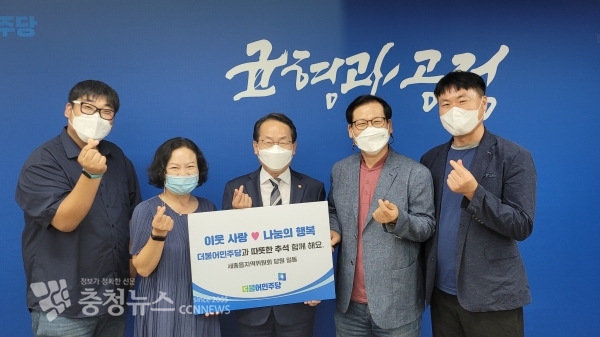 더불어민주당 세종시당(위원장 강준현)은 17일 추석을 맞아 세종시 소재 복지기관에 한가위 맞이 이웃돕기 성금을 전달했다.