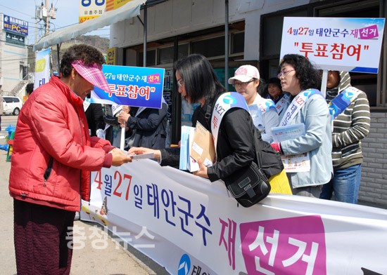 태안군(군수권한대행 이두훈) 선거관리위원회는 오는 27일 태안군수 재선거를 앞두고 투표율이 매우 낮을 것으로 판단되어 투표율을 높이기 위하여 총력을 다하고 있다고 밝혔다.