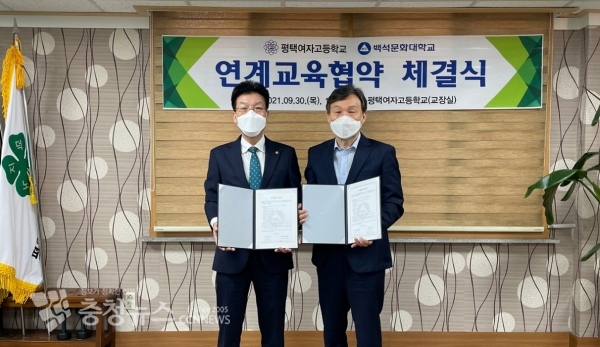 백석문화대학교(총장 송기신)는 30일 오전 11시, 경기도 평택 세교동에 위치한 평택여자고등학교 교장실에서 연계교육 협약을 체결했다.