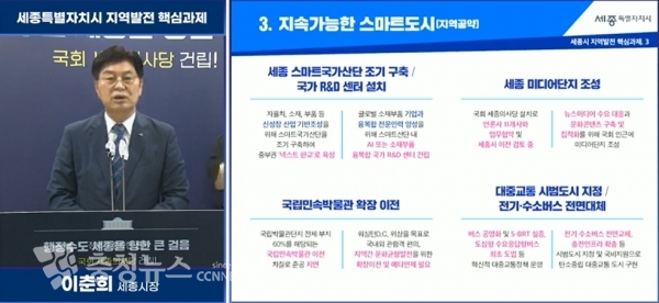 이춘희 세종시장은 30일 온라인 브리핑을 내년 3월 실시되는 제20대 대통령선거에 대비하여, 각 정당의 후보에게 대선공약으로 건의할 시 지역발전 핵심과제를 발표했다.