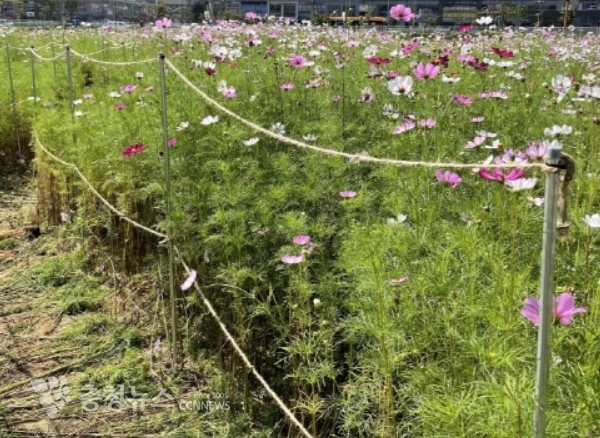 세종특별자치시 농업기술센터(소장 최인자)가 시민에게 휴식공간을 제공하기 위해 도시농업공동체와 최근 나성동 백화점 예정부지 풀꽃마당에 코스모스 등 가을꽃을 식재했다.
