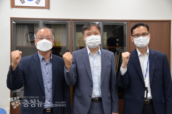 좌로부터 김학준 동장, 고석은 회장, 이경우 과장