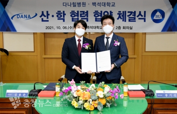 이날 행사는 백석대 송기신 총괄부총장, 천안 다나힐병원 김용준 원장을 비롯한 양 기관 관계자들이 참석한 가운데 정부에서 권고하는 코로나19 방역수칙을 철저하게 준수하며 진행됐다.