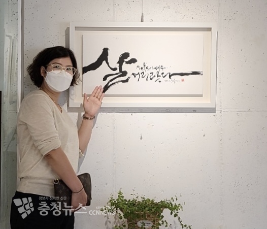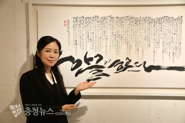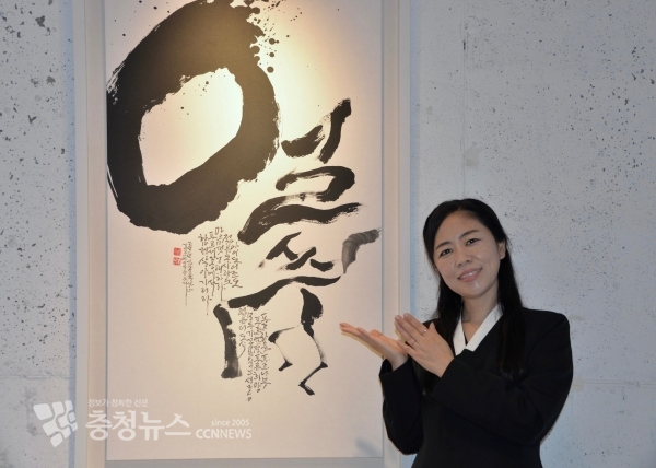 ‘세종에 한글이 흐른다’ 작품앞에서 김순자 대표