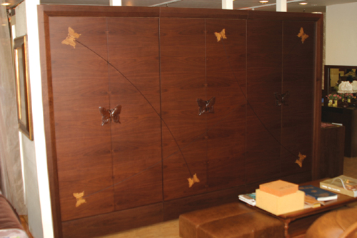 원목의 느낌을 그대로 전달하면서, 장롱에 나비문양을 넣어 디자인이 돋보이는 제품으로 중장년층을 위한 품격있는 침실공간을 연출할 수 있는 특징을