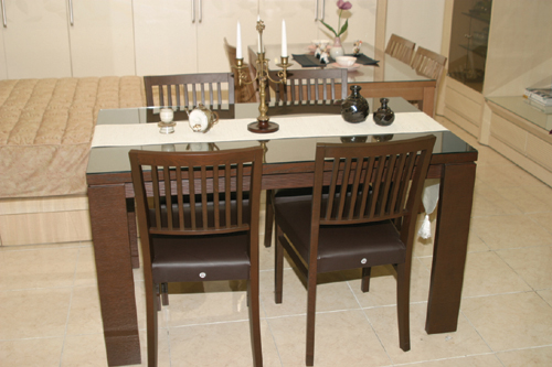 추천하는 식탁은 가죽으로 덮혀 있고, 식탁 테이블 상판은 천연 대리석으로 만든 것이 투-톤으로 적절한 조화를 이루고 있어 화사한 봄에 상큼하고