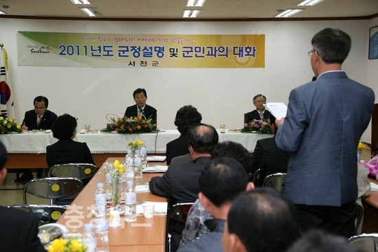 서천군(군수 나소열)은 지난 2일 그동안 조류인플루엔자와 구제역 여파로 연기됐던 13개 읍ㆍ면에 대한 2011년 군민과의 대화를 재개했다.