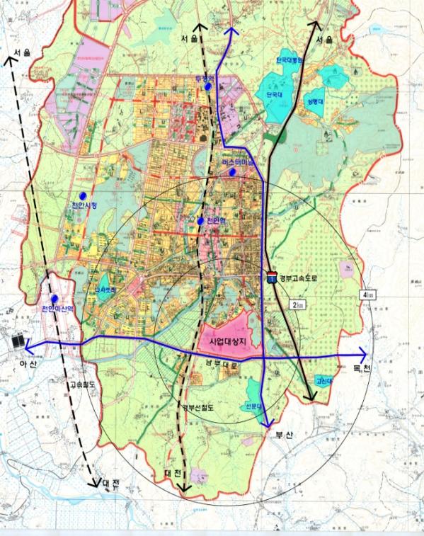 천안청수지구는 천안시 청당동 일대에 위치한 1,224천㎡ 규모의 사업지구로 지구남측에 남부대로(국도21호선), 동측에 천안대로(국도1호선)에 접해 도심부 진입이 편리하고, 경부고속철도(KTX) 천안(온양온천)역, 경부선철도, 경부고속도로 및 천안-논산간 고속도로 등 사통팔달 교통망으로 수도권 및 타 지역 접근성이 매우 우수하여 관심이 집중되는 지역이다.