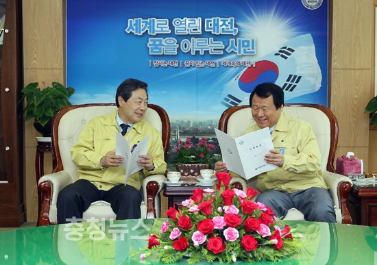 염홍철 시장은 또 “세종시 지원위원회에 관할구역의 편입이 없다는 이유로 대전시만 빠져있다”며 “대전은 세종시와 불과 10분거리에 있고 BRT(급행버스)노선 확충, 상수도 공급, 교육문화 기능 지원 등 배후도시로서 역할을 하기 때문에 상생협력관계가 더욱 크다”며 대전시의 참여를 지원해달라고 요청했다.