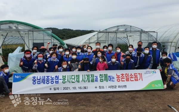 이날 일손돕기에는 충남세종농협, 농협서천군지부, 봉사단체 사계절 회원 등 50여명이 휴일도 잊은 채 구슬땀을 흘렸다.