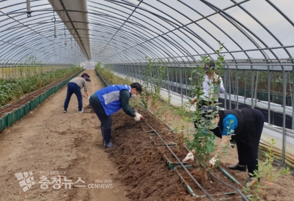 서천군 마산면 블루베리농가를 찾아 농촌일손돕기 봉사활동을 펼치고 있다.