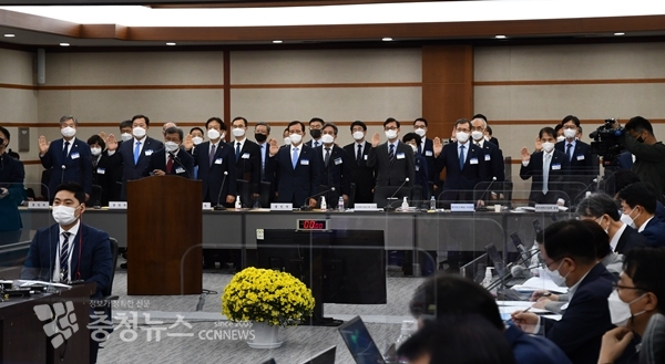 18일 한국과학기술원에서 진행된 한국연구재단 등 국회 과학기술정보방송통신위원회 국정감사 수감기관 기관장들이 감사에 앞서 선서하고 있다. 저작권자 © 충청뉴스 무단전재 및 재배포 금지 이성현 기자 다른기사 보기 기사가 마음에 드셨나요? 충청뉴스 좋은 기사 후원하기 1,000원 3,000원 5,000원 10,000원 30,000원 50,000원 직접입력 비회원 약관동의하기 ※ 소중한 후원금은 더 좋은 기사를 만드는데 쓰겠습니다.