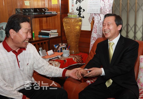 ▲ 김종성 충남교육감이 은사인 김정헌 선생님을 찾아뵙고 있다.