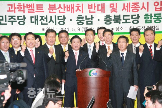 또 "국내 과학자의 82%가 충청권이 과학벨트 입지의 최적지라는 것을 주장하고 있고, 지리적으로도 주요 요건을 충족시키고 있다"며 "이명박 대통령은 과학벨트를 공약대로 충청권에 조성하라"고 촉구했다.