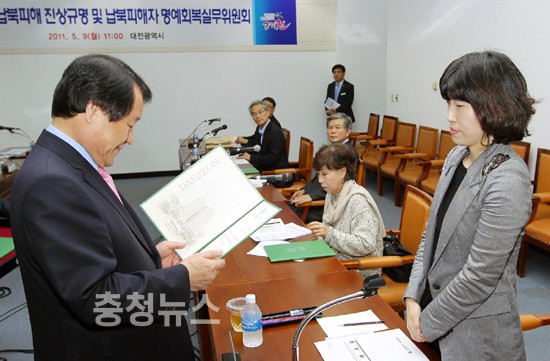 대전시(시장 염홍철)는 6.25전쟁 납북피해 진상규명 및 납북피해자 명예회복을 위한 실무위원회를 9일 시청에서 개최하고 6명의 위원에게 위촉장을 수여했다.