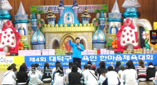 대덕구보육시설연합회는 국공립ㆍ법인보육시설연합회(회장 채수완) 주관으로 지난 14일 대전이문고등학교에서 대덕구 보육시설 193개소의 시설장 및 종사자 700여명이 모인 가운데 제4회 보육인 한마음 체육대회를 가졌다.
