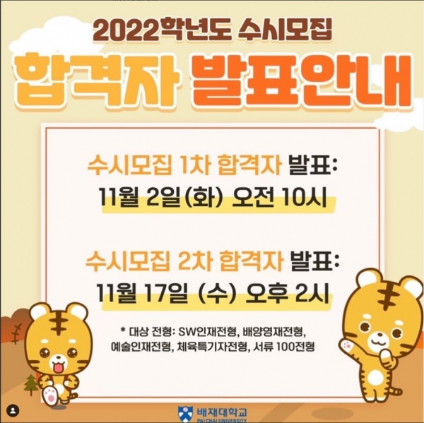 [충청뉴스 이성현 기자] 배재대학교(총장 김선재)는 2일 2022학년도 대입 수시모집 1차 합격자를 발표했다.