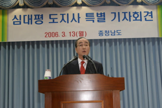 심대평 충남도지사가 13일 충남도청 대회의실에서 특별기자회견을 통해 충남지사직 사퇴를 공식 선언했다.