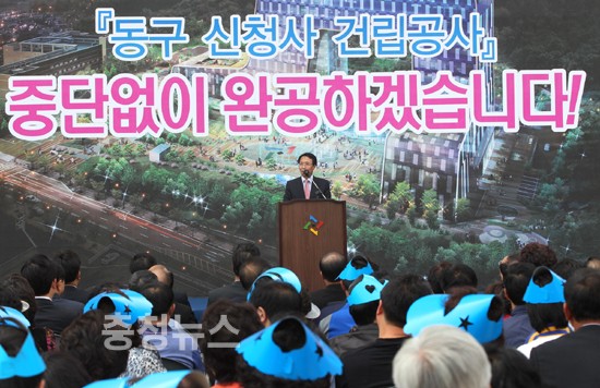 대전 동구(구청장 한현택)는 19일 가오동 동구 신청사 건립현장에서 신청사건립공사 재개에 따른 주민설명회를 개최하고 공사재개에 들어갔다.