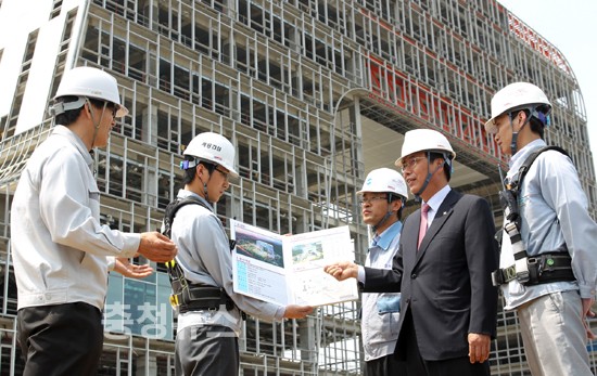 한현택 동구청장은 이날 주민설명회를 마친 후 공사 현장을 둘러보며 지난해 6월 공사가 중단된 이후 11개월 만에 공사를 재개하는 공사관계자들을 격려하고 신청사 건립에 총력을 다해줄 것을 당부했다.