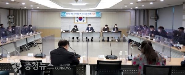 [충청뉴스 최형순 기자] 아산시의회(의장 황재만)는 10일 코로나19 장기화로 어려움을 겪고 있는 아산시 문화예술단체 관계자들과 간담회를 가졌다.