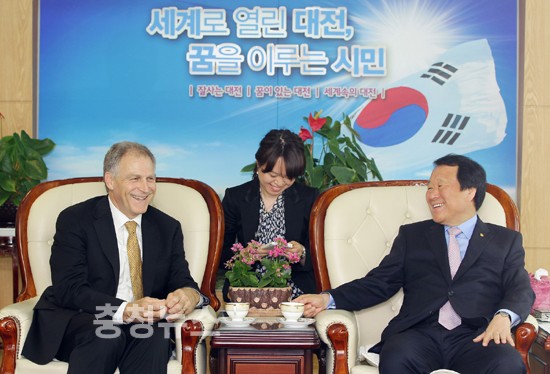 ▲ 美 맥알렌시 경제개발청 CEO일행이 방문해 염홍철 대전시장에게 친서를 전달했다.