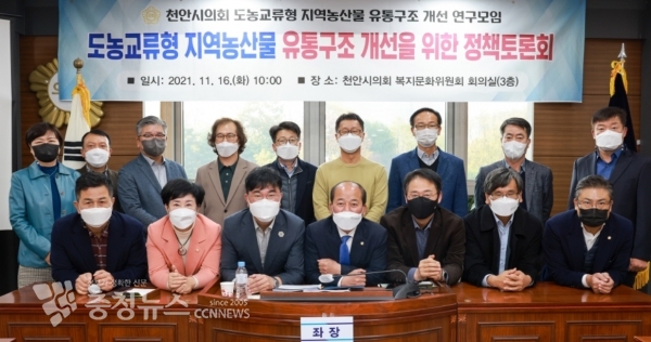 [충청뉴스 최형순 기자] 천안시의회 도농교류형 지엮농산물 유통구조 개선 연구모임는 16일 천안시의회 복지문화위원회 회의실에서 ‘천안시 지역농산물(로컬푸드) 유통구조 개선 방안’을 주제로 토론회를 개최했다.