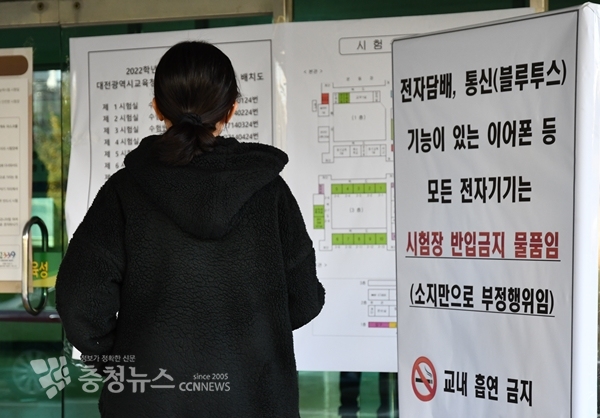한편 수능 당일 대전에선 1만5649명이 35개 시험장에서, 충남은 1만6739명이 56개 시험장에서 일제히 시험을 치른다.