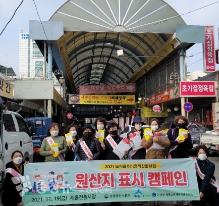 [충청뉴스 최형순 기자] 사)대전세종소비자공익네트워크는 농림축산식품부, 세종특별자치시 협력사업의 일환으로 19일 세종전통시장에서 원산지표시제도 홍보캠페인을 시장 상인 대상으로 진행했다.
