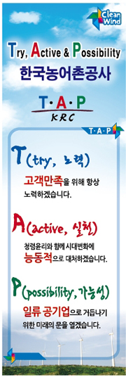 한국농어촌공사 충남지역본부(본부장 방한오)가 실천하는 청렴문화를 조성 하기위해 T.A.P 운동을 추진 한다.