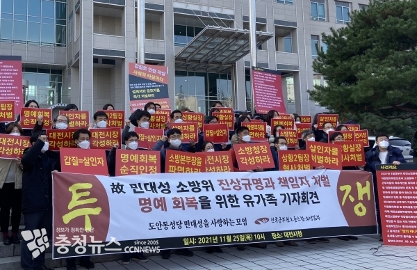 지난 9월 직장 내 갑질로 극단적 선택을 한 대전 소방공무원 민대성 씨와 관련해 유가족이 철저한 진상 규명과 가해자 처벌, 명예회복을 위한 순직 처리를 촉구하고 나섰다.