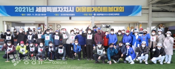 [충청뉴스 최형순 기자] 장애인과 비장애인이 하나 되는 ‘2021 세종특별자치시 어울림게이트볼대회’가 26일 조치원 게이트볼장에서 선수, 심판 등 56명이 참가한 가운데 개최됐다.