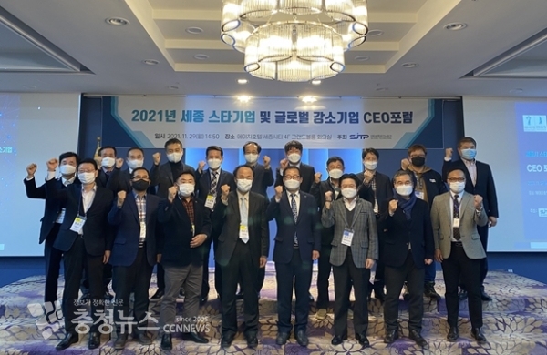 [충청뉴스 최형순 기자] (재)세종테크노파크(원장 김현태)는 11월 29~30일 세종 지역 스타기업 (2019년~2021년)과 글로벌강소기업을 대상으로, '2021년 세종시 스타기업, 글로벌강소기업 CEO포럼'을 이틀간 개최하였다.