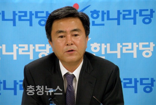 한나라당 김태흠 비상대책위원회 위원이 1일 대전시당에서 열린 기자간담회에서 자유선진당의 역할과 충청권 신당 창당에 대한 강한 비판을 해 눈길을 끌고 있다.