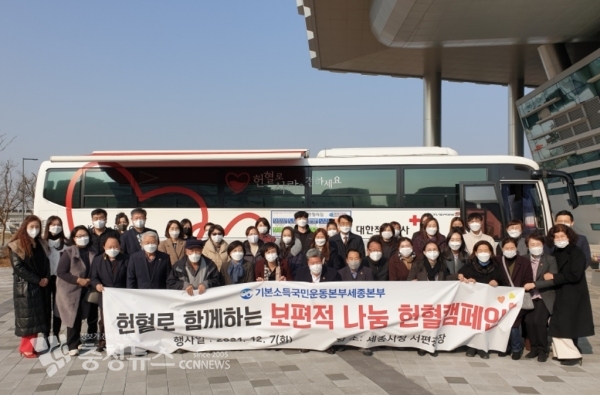 보편적 나눔 실천 기본소득국민운동 세종본부 헌혈 캠페인 실시
