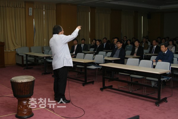 그의 강연은 대전시청 세미나실에서 진행됐다. 대전시 직원들을 대상으로 한 교양강의였다. 강의가 예정된 오후 4시가 지났는데도 자리가 많이 비었다. 공무원들이 쭈뼛쭈뼛하며 들어온다. 눈치를 보아하니 자리 채우라고 동원된 모양이다. 몇몇 공무원은 귀찮은 표정이 역력했다.