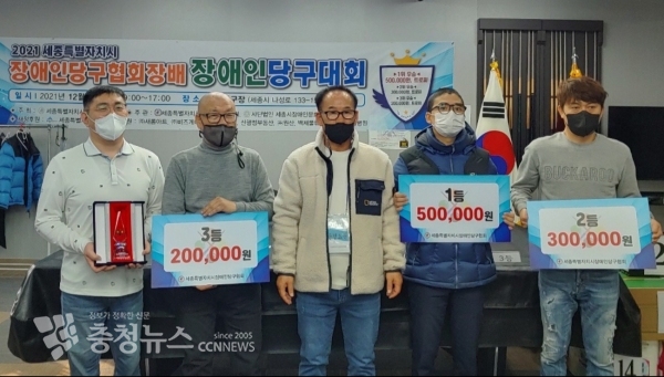 [충청뉴스 최형순 기자] 세종특별자치시(시장 이춘희)는 11일 나성동 애플당구장에서 ‘2021년도 세종특별자치시장애인당구협회장배 장애인당구대회’를 개최했다.