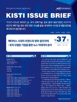 이에 KISTI는 뉴스 빅데이터 1만3581건을 대상으로, 토픽 모델링 분석방법 중 LDA(Latent Dirichlet Allocation) 알고리즘을 통해 주요 키워드와 동향을 분석해 메타버스 트렌드를 도출했다.