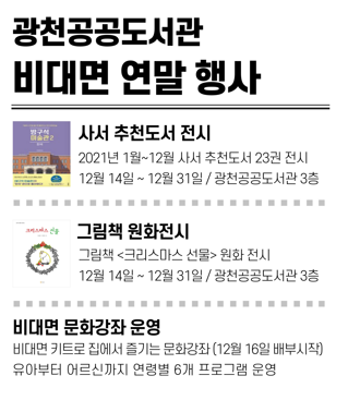 도서관 관계자는“감염병 확산 기세가 좀처럼 줄지 않는 힘든 시기를 보내고 있지만 책에서 위로를 얻어 따로 또 같이 올 한해를 잘 마무리하는 시간이 됐으면 좋겠다”고 전했다.