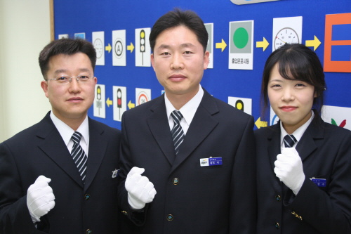 ▲ 김상현<좌> 송재일 기관사 “안전하게 운전하고 돌아오는 것이 가장 큰 바람이자 계획입니다.” 역사적인 개통식을 마친 대전도시철도의 첫 영업 열차를 운전한 김상현 기관사(승무팀ㆍ32)의 첫 일성이다. 김 기관사는 16일 오후 3시 정각에 판암역에서 정부청사행 열차를 몰았다. 김 씨는 “판암역에서 첫 시민을 모시게 돼 기쁘고 보람을 느낀다”며 6개월여의 강도 높은 교육훈련의 결과라고 말했다. 김 씨와 함께 오후 3시 정부청사역 첫 열차를 운전한 송재일 기관사(29)도 “처음으로 영업 열차를 몰게 돼 가슴이 설레고 한편으로 부담을 느낀다”면서 “지금껏 훈련 받은대로 하면 잘 할 수 있잖겠나?”고 반문했다. 송씨는 “앞으로 대전시민의 안전하고 빠른 발이 되도록 최선을 다하겠다”고 밝혔다. 두 기관사는 지난해 8월 공채 1기로 입사한 뒤 600시간 이상의 실무이론교육과 3,000Km 주행을 무사히 마치고 지난 2월에 정식 기관사가 된 대전도시철도 ‘새내기’기관사들. 김씨는 충북 괴산 출신이며 전자통신공학을 전공한 2남 1년중 막내. 송씨는 대전출생으로 전기전자를 전공한 2남중 장남이다. ▲ 좌부터 정명화 황보작승무팀장 오현주