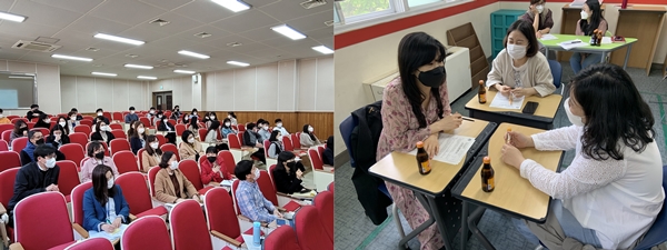 학생회 대상 액션러닝 활동(왼쪽)과 포춘쿠키 나눠주기 활동.
