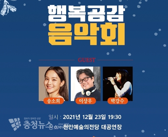 송소희를 비롯해 천안시 시립교향악단, 박강수, 이상우가 출연해 코로나19로 지친 70만 시민들에게 활력을 불어넣고, 희망의 메시지를 전할 예정이다.