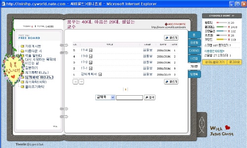 | ▲ 심원보 교수(나노바이오화학과)의 미니홈피 중 학과관련 내용이 실린 게시판 모습 | ||